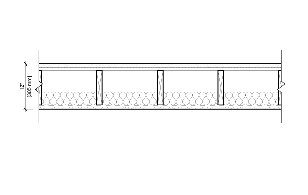 1/2" [12.7 mm] resilient channel, 25 ga. (0.018"), spaced 12" [305 mm] O.C. max.