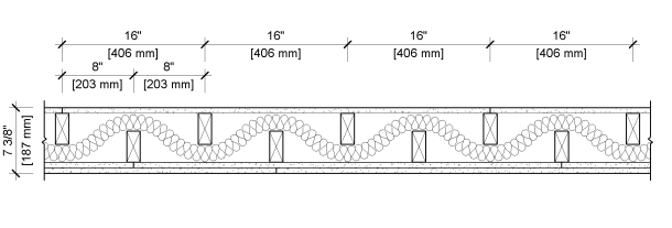 2" x 4" [38 x 89 mm] Wood Studs, staggered, 8" [203 mm] O.C.