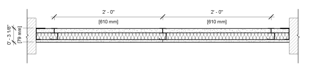 2" CH Studs, 20ga. MSG., Spaced 24" O.C.